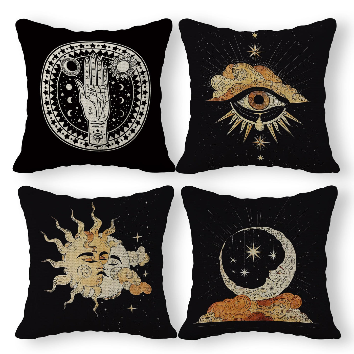 Tarot Linen Throw Pillow Case Set Of 4, Tarot Decor Pillow Cover, Tarot Witchy Room Decor Cushion Cover For Sofa Couch Bed Colle