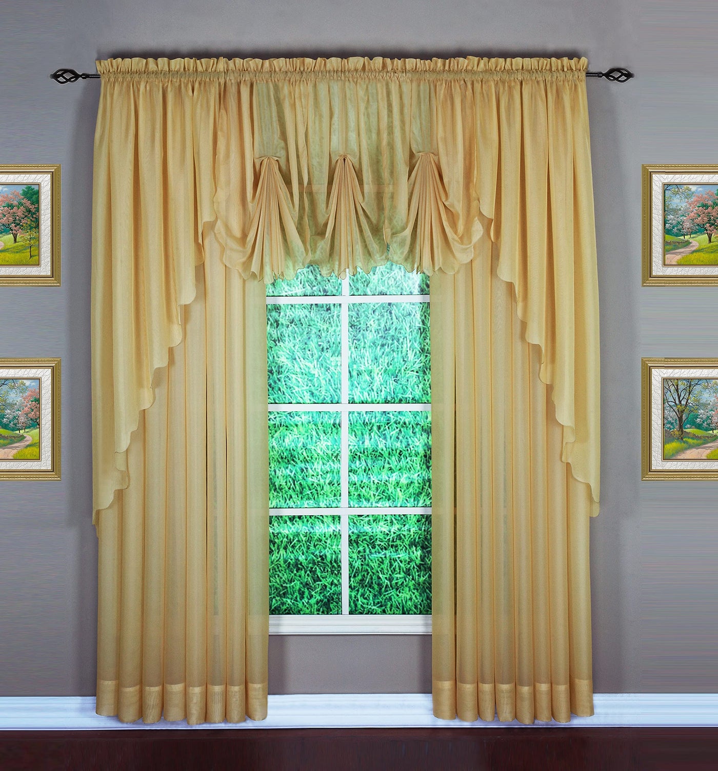 True Premium Voile Sheer, Woven By High Twisted Double Filaments, Crispy And Soft, A True Luxury Voile Sheer, Offering Authentic Touch Of French Tergal. Interchangeable Components, Creative Combinations, All Are Easy To Create Your Own Window D Cor In A Customized Fashion, Pick And Add To Your Any Window Size And Style, You Take Control Of Your Every Window Fashion Style, From 19 Sizes In 18 Colors! Use 1.5 Rod Pocket. 100% Polyester. Easy Care, Machine Washable. Each Unit Sold Separately. Emelia Top Treatments: Available In Valance, Swag 38 , Swagger 63 , Fan Insert, Double Layered Ascot, Scarf 144 Or Scarf 216 . Combine And Create Your Top Treatment, Add More Units To Fit Any Wider Window! Emelia Tier Curtains: Available Tier 24 , Tier 30 , Tier 36 , All Tailored In 3' Generous Ham Bottom, Full Width 60 For Each Tier Pair, Also Work With Swag 38 And Valance For All Kitchen Windows. Emelia Panel Curtains: Direct Woven Sides On Each Panel, Clean And Straight Sides, No Stiches On Both Vertical Sides Of Panel! Full Width Of 60' Panel! Generous 5' Tailored Ham Bottom! Panel Length Available In 45',54 ,63 ,72 ,84 ,90 ,95 ,108 , 120', All Length Available In 18 Colors! Each Unit Sold Separately.