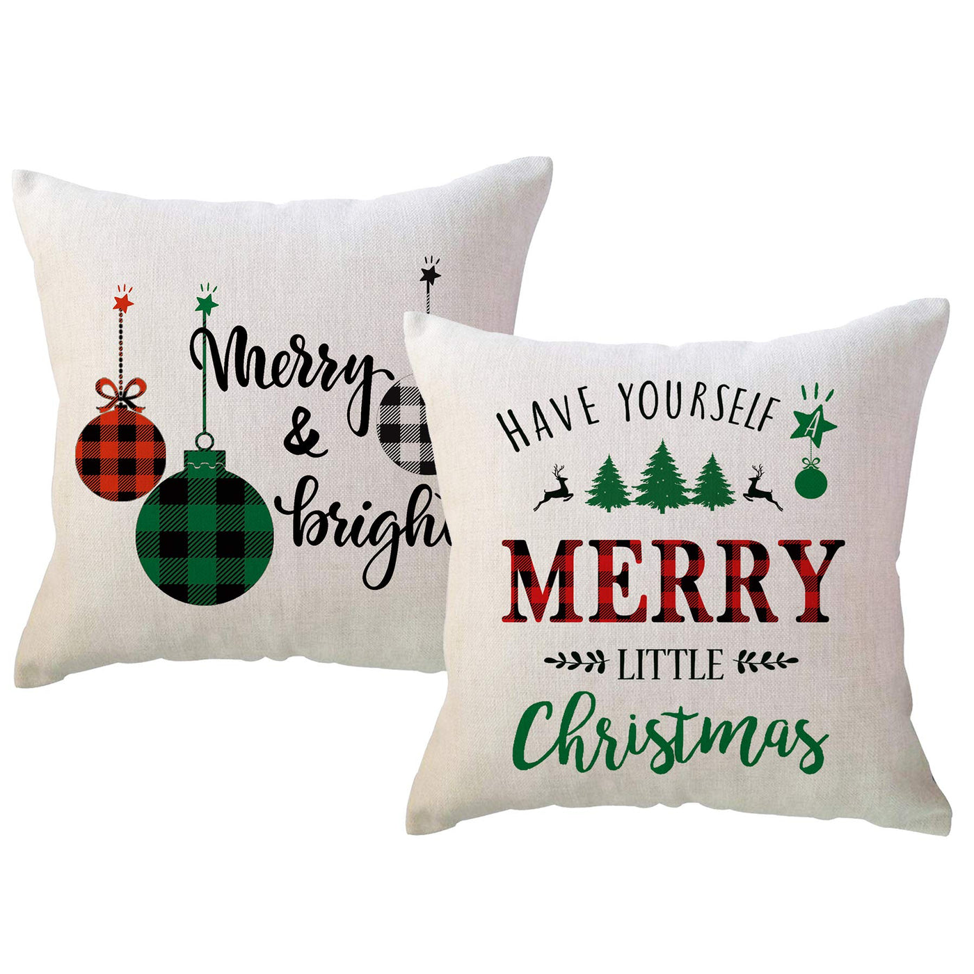 Ulove Love Yourself 2Pack Christmas Throw Pillow Covers 18 X 18 Inches Red Black Green Buffalo Check Plaids Xmas Trees/Christmas