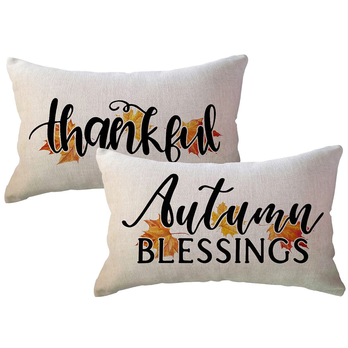 Nice Artistic Touch,Light Up Your Life! --------------------------By Uloveyourself Throw Pillow Covers Set Of 2 Autumn Pillow Covers 1Pcautumn Blessings/Maple Leaves 1Pcthankful/Maple Leaves ?Specification ?Autumn Quote Decorative Pillow Covers ?Size:1220Inches(3050Cm) ?Material:Made Of Durable And Environmentally Friendly Polyester Burlap Materials ?Application:Perfect To Your Home Decor, Living Rooms, Bedding, Kitchen, Sofa, Couch, Car, Porch,Patio, Toss, Chair, Bedrooms, Offices, Etc. ?Warm Tips 1.Due To The Handmade And Manual Measurement, Please Understand There May Be 1-2Cm Deviation Exist. 2.Due To The Lighting And Monitors,There Are Slight Difference Between The Picture And The Real Item. 3.Please Note:The Pattern Is One Side Only , The Back Is Linen Beige Color Without Printing. ?Washing Tips 1.Machine Wash Cold Separately; 2.Gently Cycle Only; 3.No Bleach; 4.Tumble Dry Low; 5.Do Not Iron, Low Temperature If Necessary.