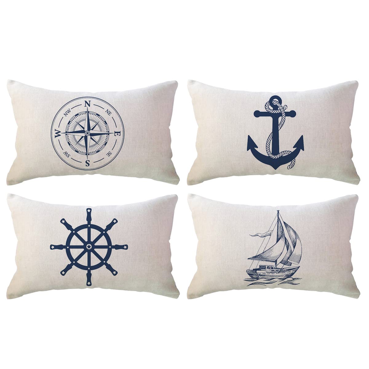 Ulove Love Yourself Coastal Sailing Throw Pillow Covers Blue Compass/Anchor/Sailboat/Navigation Pattern Ocean Theme Cushion Cove