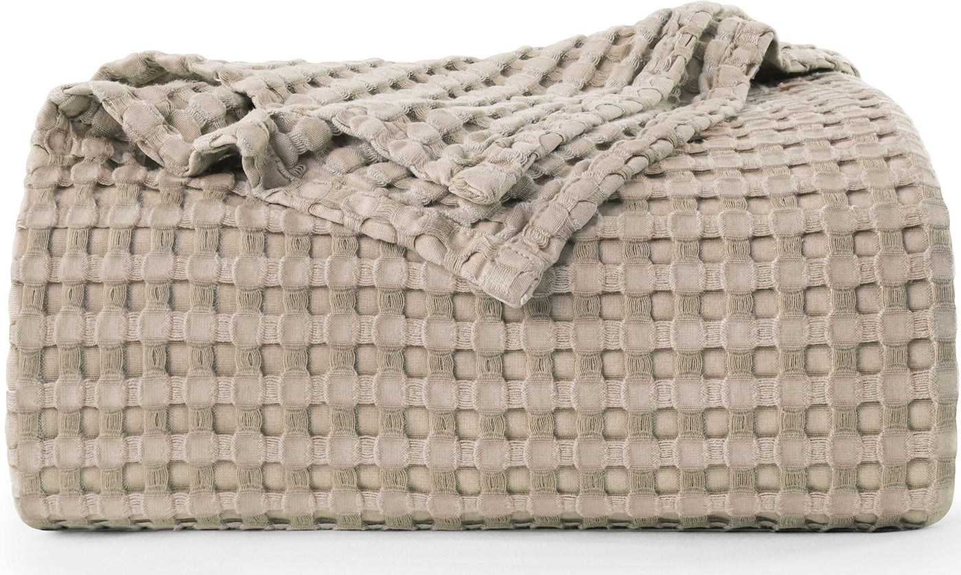 Utopia Bedding Cotton Waffle Blanket 300 Gsm (Khaki - 90X72 Inches) Soft Lightweight Breathable Bed Blanket Twin Size Layering A
