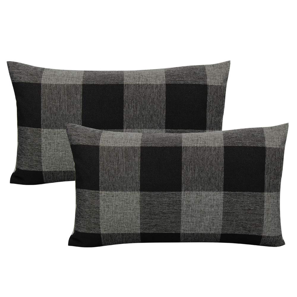 Vakado 12X20 Inch Pack Of 2 Farmhouse Retro Check Plaids Lumbar Throw Pillow Covers Decorative Rectangle Cushion Cases For Sofa