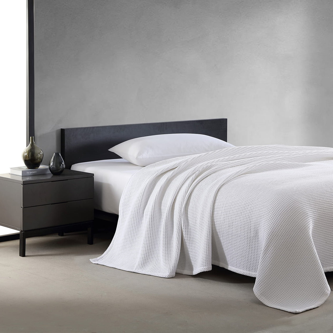 Vera Wang - Queen Blanket, Luxury Cotton Bedding, Soft Home Decor With Waffle Weave Knit (Waffleweave White, Queen)