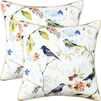 Vogol Throw Pillow Cover Case For Couch, Blue Bird & Plant Printed Soft Home Decorate Lumbar Pillow Cover, 1 Piece Farmhouse Sty