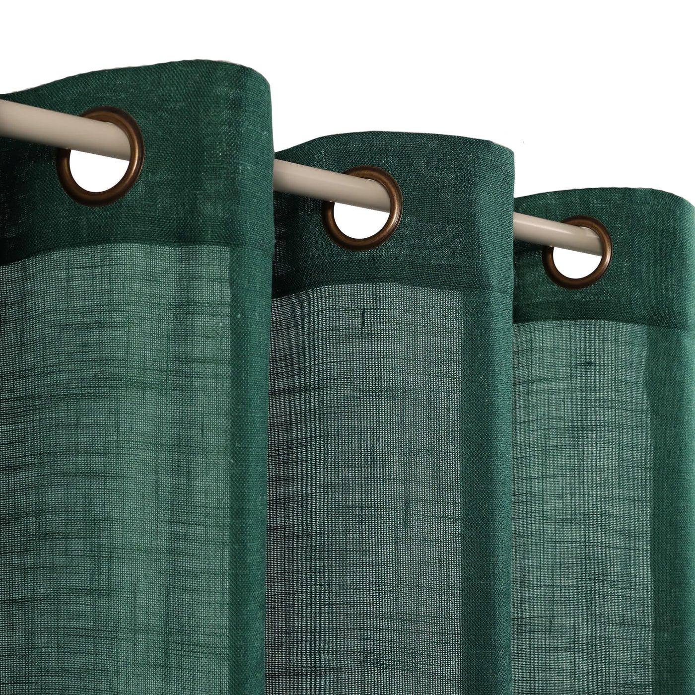 Voilybird Forest Green Linen Curtains 108 Inches Long For Living Room Boho Semi Sheer Drapes With Bronze Grommets Set Of 2 Panel