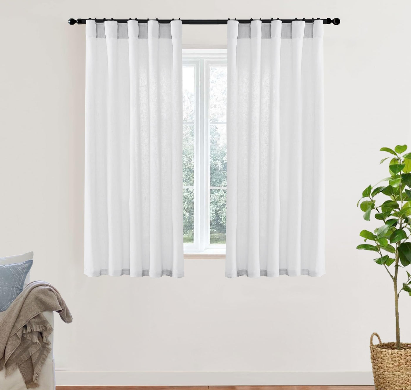 Xtmyi 54 Inch Length White Short Curtains For Windows Living Room,Semi Sheer Linen Cotton Curtains For Bathroom Window Bedroom,5