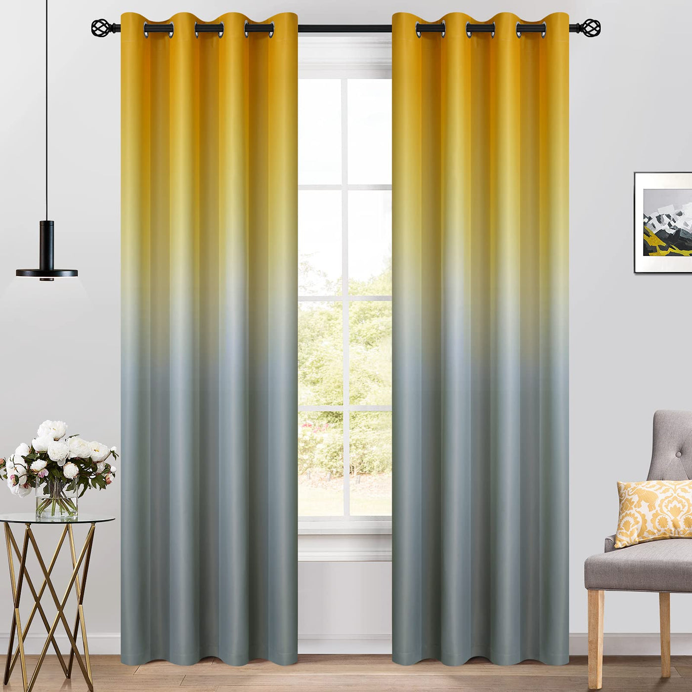 Yakamok Blackout Ombre Yellow And Grey Curtains For Living Room,Room Darkening Thermal Insulated Gradient Drapes, Grommet Light