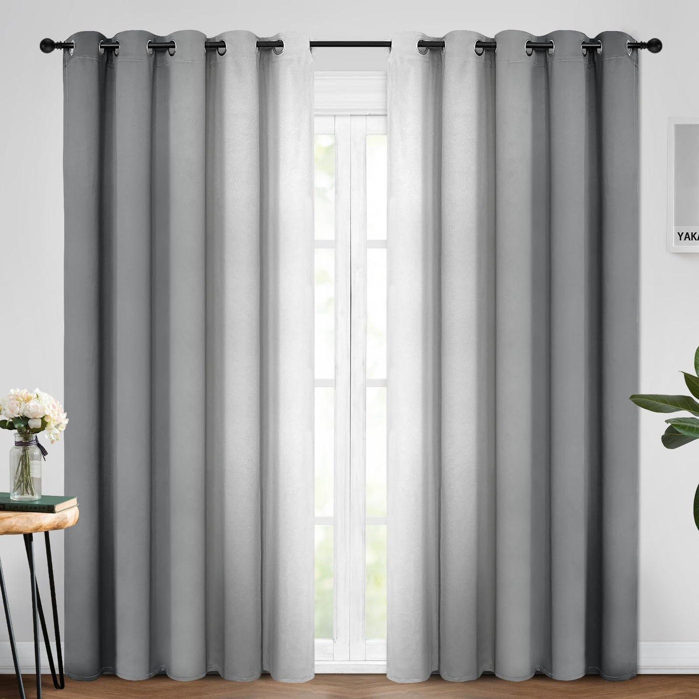 Yakamok Room Darkening Ombre Curtains 84 Inch Length, Grey And Greyish White Thermal Insulated Gradient Color Curtains,Light Blo