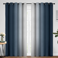 Yakamok Room Darkening Ombre Curtains 84 Inch Length, Navy Blue And Greyish White Thermal Insulated Gradient Color Curtains,Ligh