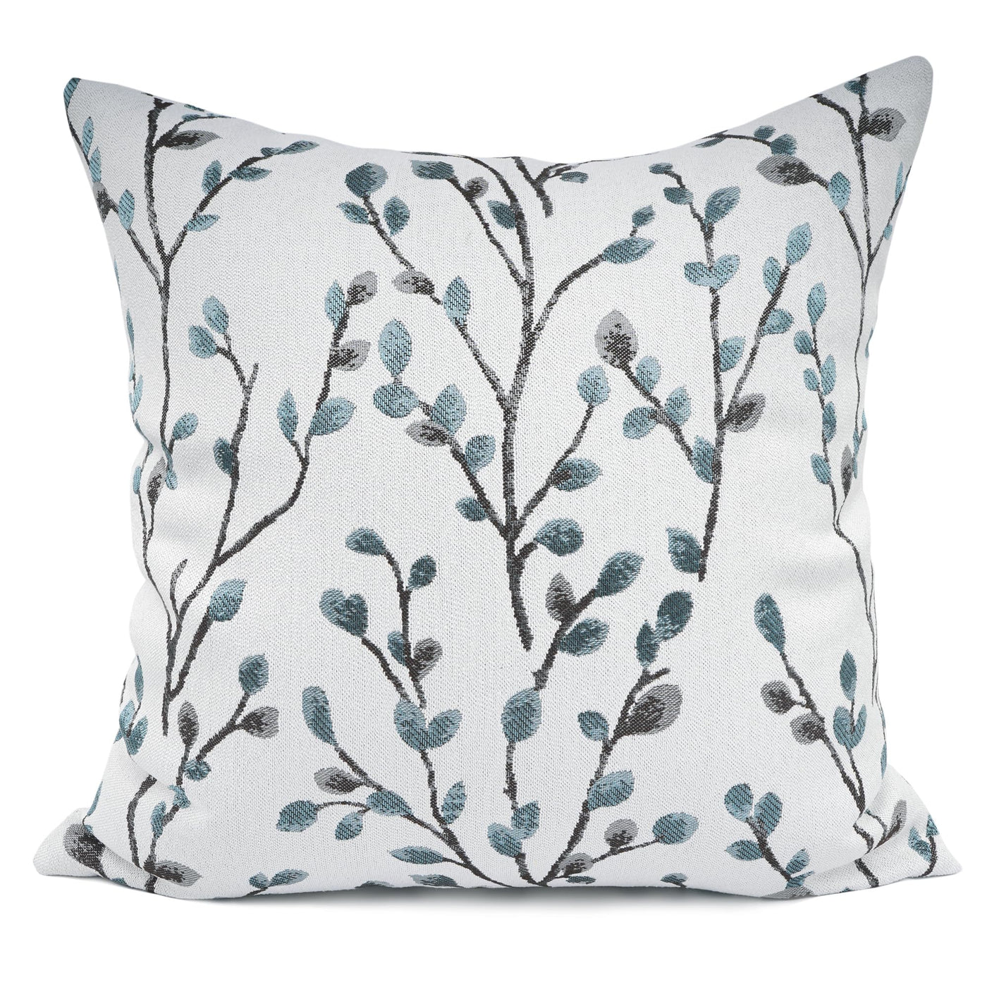 Your Smile Classical Embroidery Jacquard Teal Leaf Pattern Square Decorative Throw Pillow Case Cushion Cover 18X18 Inch