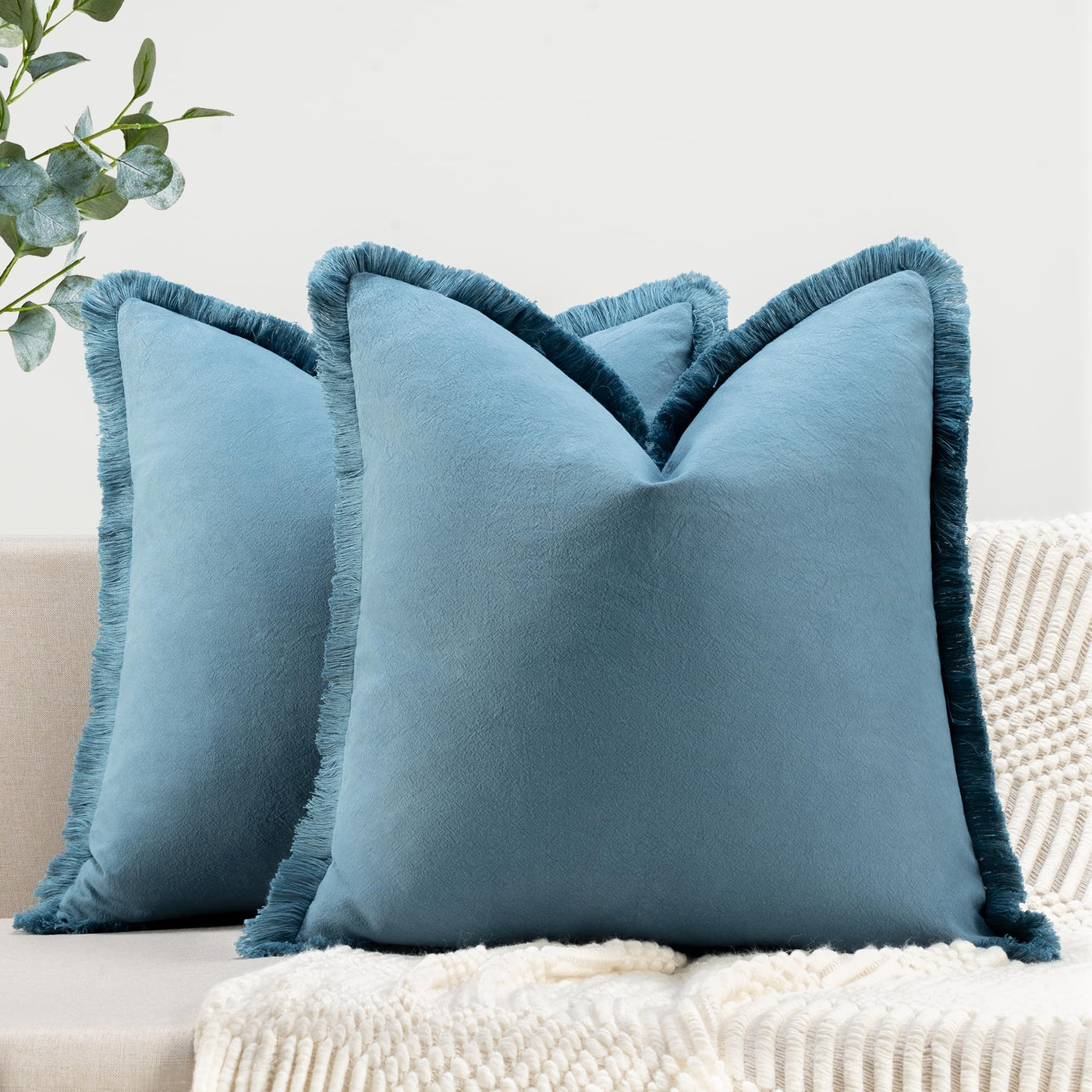 Zwjd Pillow Covers 26X26 Set Of 2 Blue Throw Pillow Covers With Fringe Chic Cotton Decorative Pillows Square Cushion Covers For