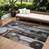 10' X 14' Brown Gray And Blue Geometric Washable Indoor Outdoor Area Rug