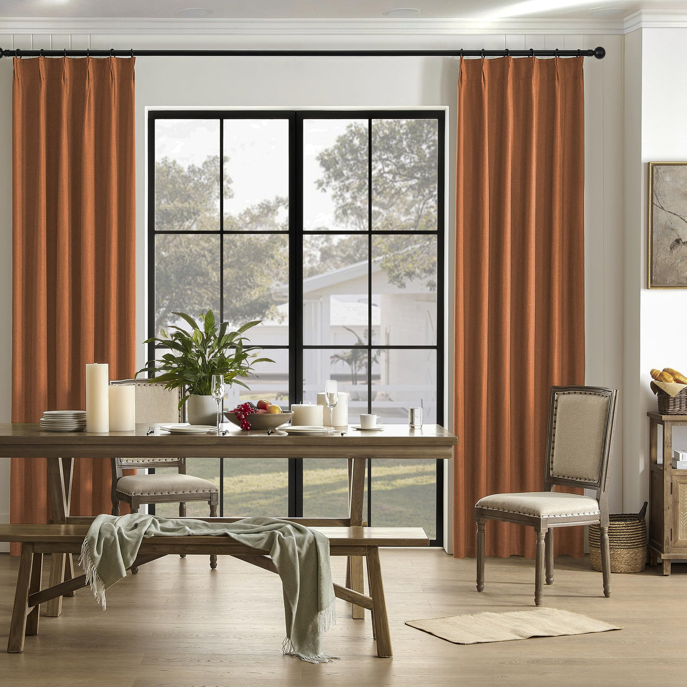 Q: Do these curtains help with energy efficiency?A: Yes, the pinch pleats provide an added layer of insulation that helps regulate room temperature by reducing heat transfer through windows.