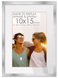 10X15 Silver Frame For 10X15 Picture Or 12X17 Art Poster Without White Photo Mat. The Included White Picture Matte Is Acid-Free To Protect Your Prints, Pictures, Posters, Photos, Fotos, Or Puzzle. This Silver Frame Is Constructed From Pine Wood. Great For Your Walls Decor, Boho Theme, Canvas Art, Kitchen Art, Rustic Art, Livingroom Art, Neutral Theme, Painting, Drawing, Industrial, Mirror Art. Each Frame Includes Uv Resistant, Shatter Guard, Frame Grade Acrylic, In Place Of Standard Glass. Acid-Free White Foam Board Backing And Metal Hanging Hardware Are Also Included. Great For Collages! Easily Assemble Your Own Gallery Wall Frame Set Or Wood Frames Collage By Combining Several Black, White, Silver, Or Natural Frames To Create Your Own Wooden Frame Wall Grid. Add To Your Home Aesthetic Wall Decor With Our Custom Picture Frames. Each Wooden Photo Frame Is Made In The Usa To Compliment Any Modern, Contemporary Decor Or Farmhouse Decor Theme.