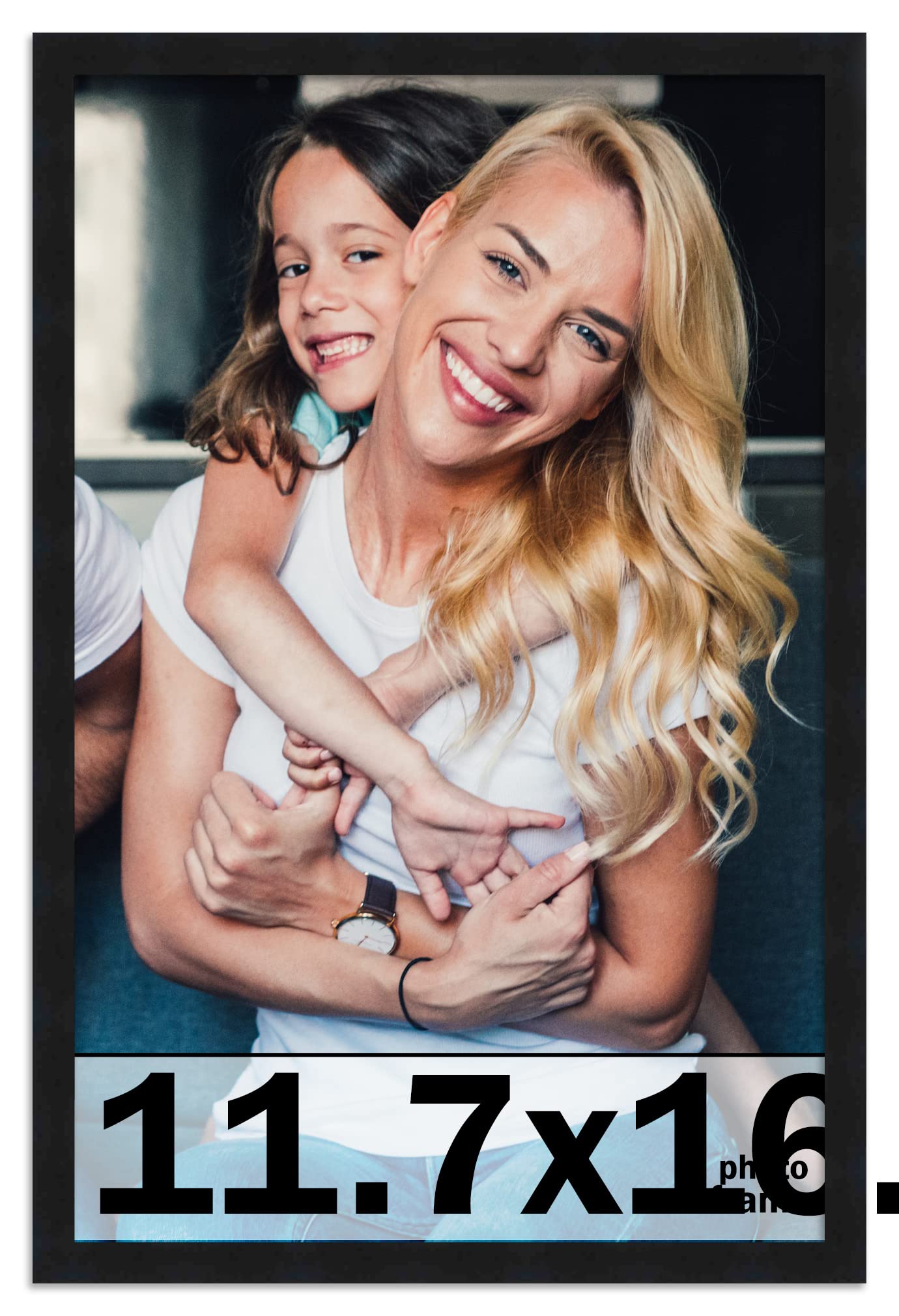 Q: What size photos can I display in the 11.7x16.5 Frame?A: The 11.7x16.5 Frame is custom made to display artwork, photos, documents, Instagram photos, autographs, sports shots, diplomas, message boards, mirrors, and other media measuring 11.7x16.5 inches.