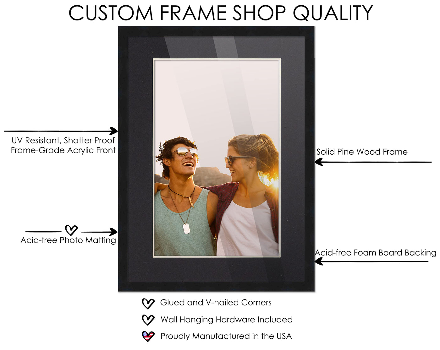 17X24 Frame Black Wood With Black Mat | 19X26 Frame Matted To 17X24 | Display Your Picture Under Uv Acrylic Shatter Guard Front,