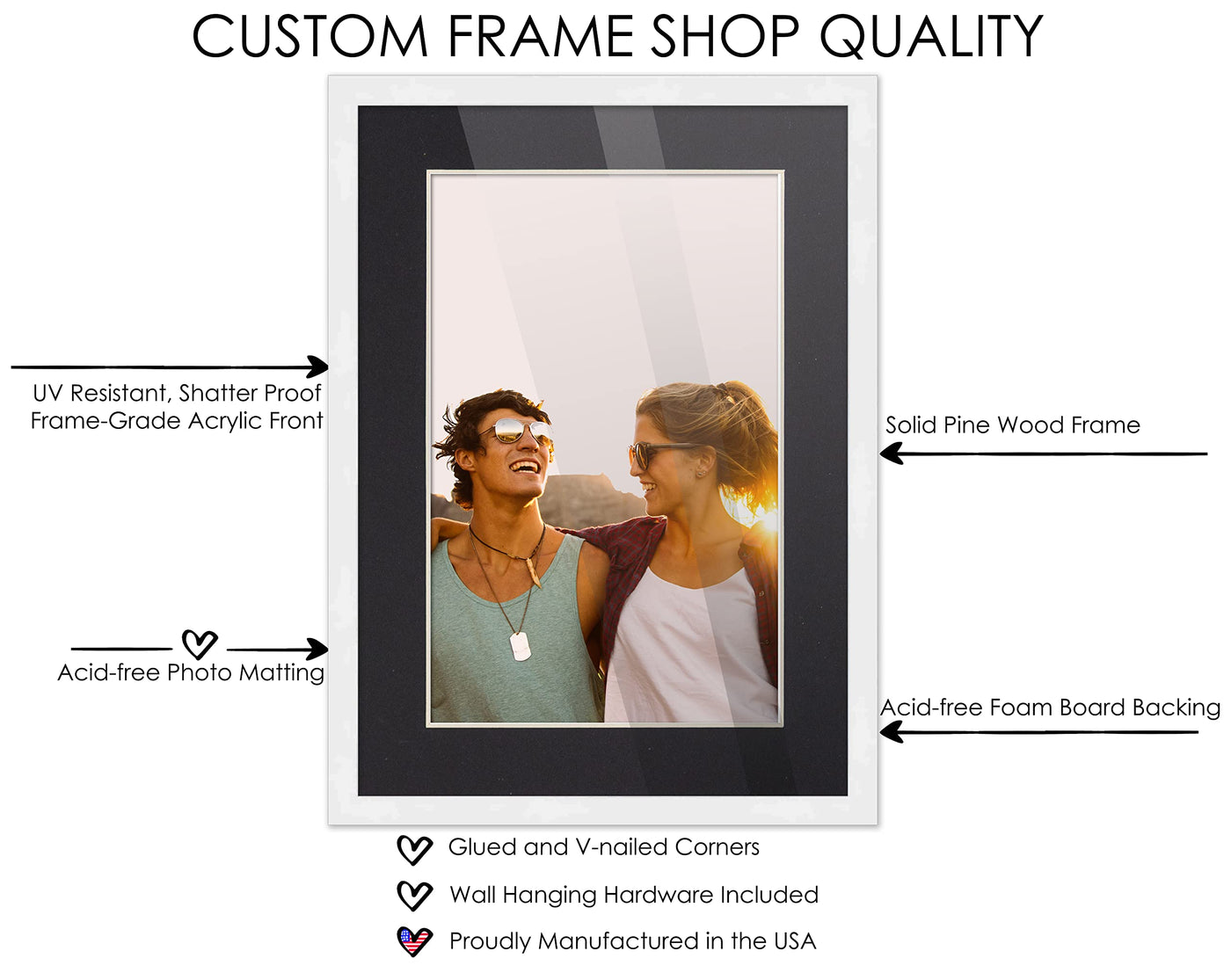 17X24 Frame White For 17X24 Picture Or 19X26 Art Poster Without Black Photo Mat. The Included Black Picture Matte Is Acid-Free To Protect Your Prints, Pictures, Posters, Photos, Fotos, Or Puzzle. This White Frame Is Constructed From Pine Wood. Great For Your Walls Decor, Boho Theme, Canvas Art, Kitchen Art, Rustic Art, Livingroom Art, Neutral Theme, Painting, Drawing, Industrial, Mirror Art. Each Frame Includes Uv Resistant, Shatter Guard, Frame Grade Acrylic, In Place Of Standard Glass. Acid-Free White Foam Board Backing And Metal Hanging Hardware Are Also Included. Great For Collages! Easily Assemble Your Own Gallery Wall Frame Set Or Wood Frames Collage By Combining Several Black, White, Silver, Or Natural Frames To Create Your Own Wooden Frame Wall Grid. Add To Your Home Aesthetic Wall Decor With Our Custom Picture Frames. Each Wooden Photo Frame Is Made In The Usa To Compliment Any Modern, Contemporary Decor Or Farmhouse Decor Theme.