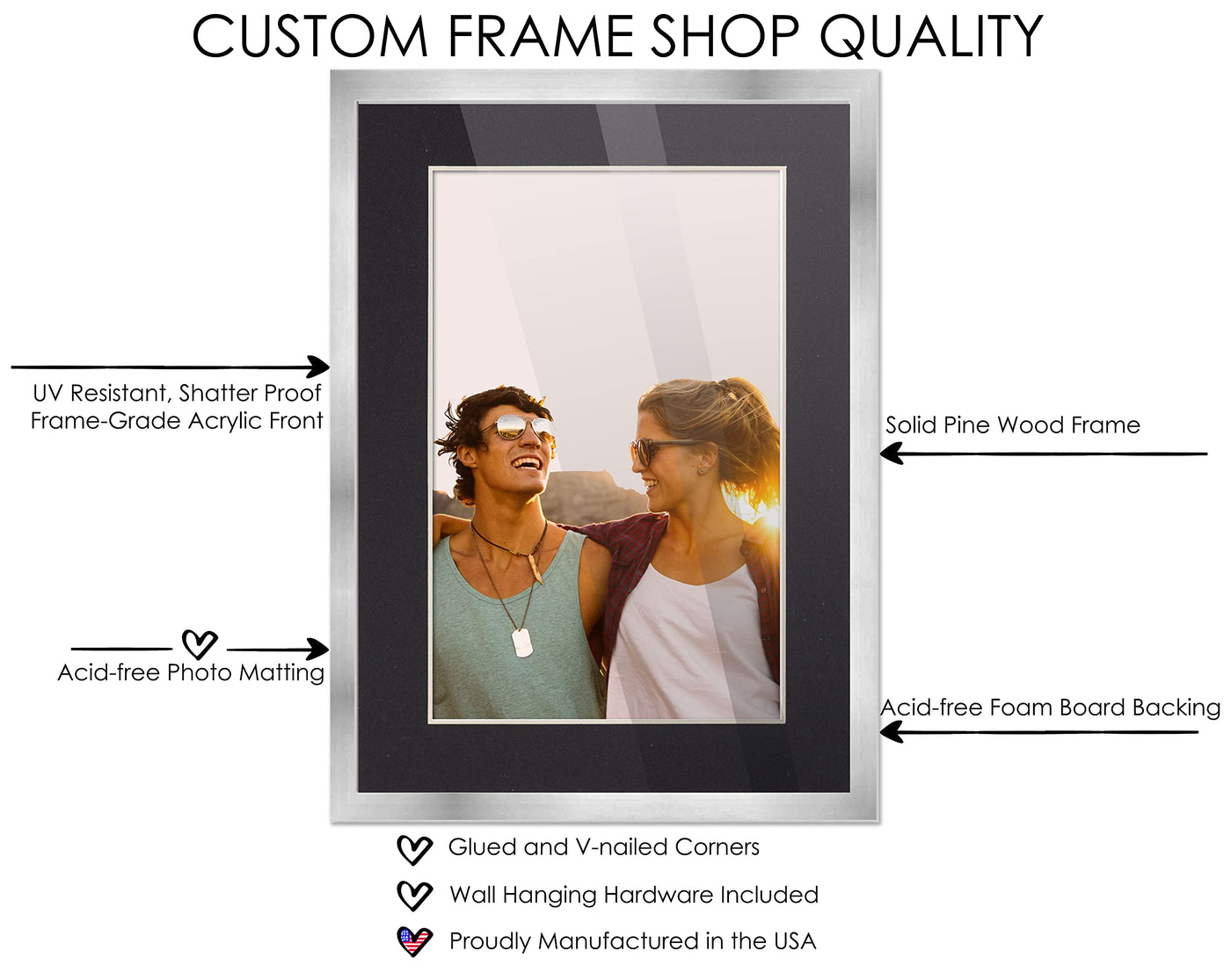 18X24 Silver Frame For 18X24 Picture Or 22X28 Art Poster Without Black Photo Mat. The Included Black Picture Matte Is Acid-Free To Protect Your Prints, Pictures, Posters, Photos, Fotos, Or Puzzle. This Silver Frame Is Constructed From Pine Wood. Great For Your Walls Decor, Boho Theme, Canvas Art, Kitchen Art, Rustic Art, Livingroom Art, Neutral Theme, Painting, Drawing, Industrial, Mirror Art. Each Frame Includes Uv Resistant, Shatter Guard, Frame Grade Acrylic, In Place Of Standard Glass. Acid-Free White Foam Board Backing And Metal Hanging Hardware Are Also Included. Great For Collages! Easily Assemble Your Own Gallery Wall Frame Set Or Wood Frames Collage By Combining Several Black, White, Silver, Or Natural Frames To Create Your Own Wooden Frame Wall Grid. Add To Your Home Aesthetic Wall Decor With Our Custom Picture Frames. Each Wooden Photo Frame Is Made In The Usa To Compliment Any Modern, Contemporary Decor Or Farmhouse Decor Theme.