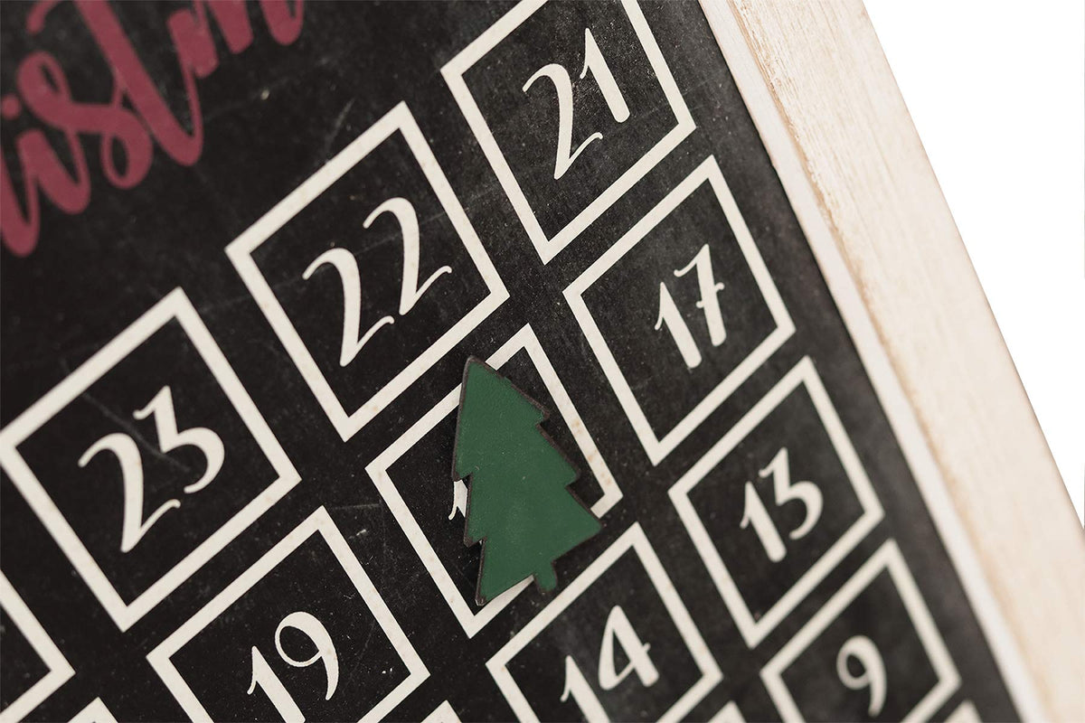 Freestanding Christmas Advent Calendar A Perfect Addition To Any Christmas Theme, And The Best Way To Start Your Official Count Down To Christmas With Your Family. Material: Mdf, Firwood And Iron Size: 9.875 X 1.125 X 22.875 Inches Color: White & Black Features -This Calendar Is Fun Way For The Kids To Count Down The Days Until Santa Comes! -Pairs With Removable Tree-Shaped Magnet To Mark The Days Left Until Christmas. -This Advent Calendar Is Easy To Stand Near The Christmas Tree Or Front Door With Solid Wood Easel To Make An Instant Eye-Catcher In Your Arrangement. -Give As A Christmas Gift To Friends, Family Members, Teachers And Coworkers.
