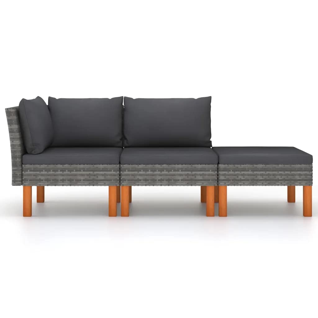 3 Piece Patio Lounge Set Poly Rattan and Solid Eucalyptus Wood