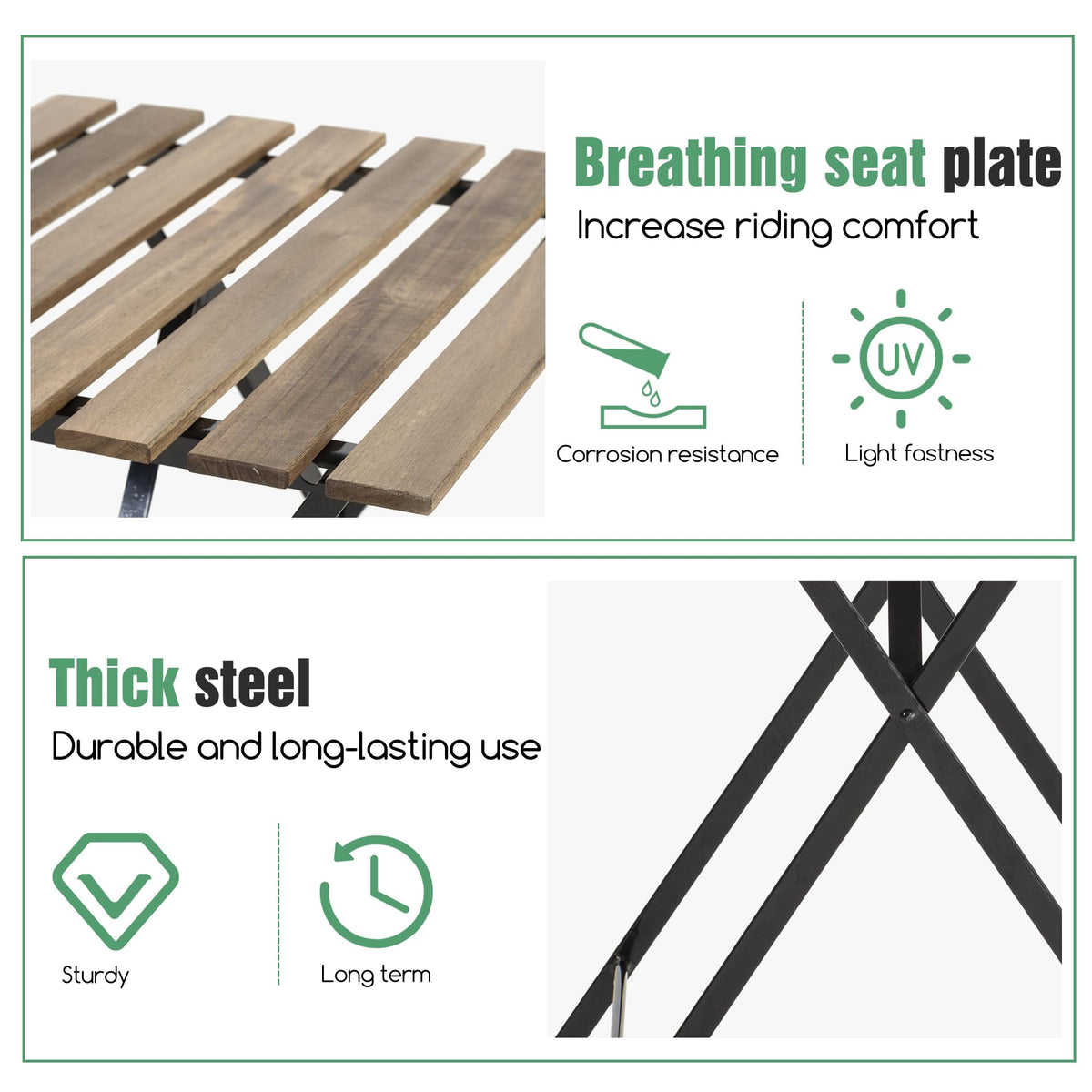 3 Pieces Bistro Set Outdoor Furniture Sets 2 Folding Chairs And Table Steel Frames And Weather-Resistant Wood Portable Design For Bistro & Balcony (Chestnut Brown)