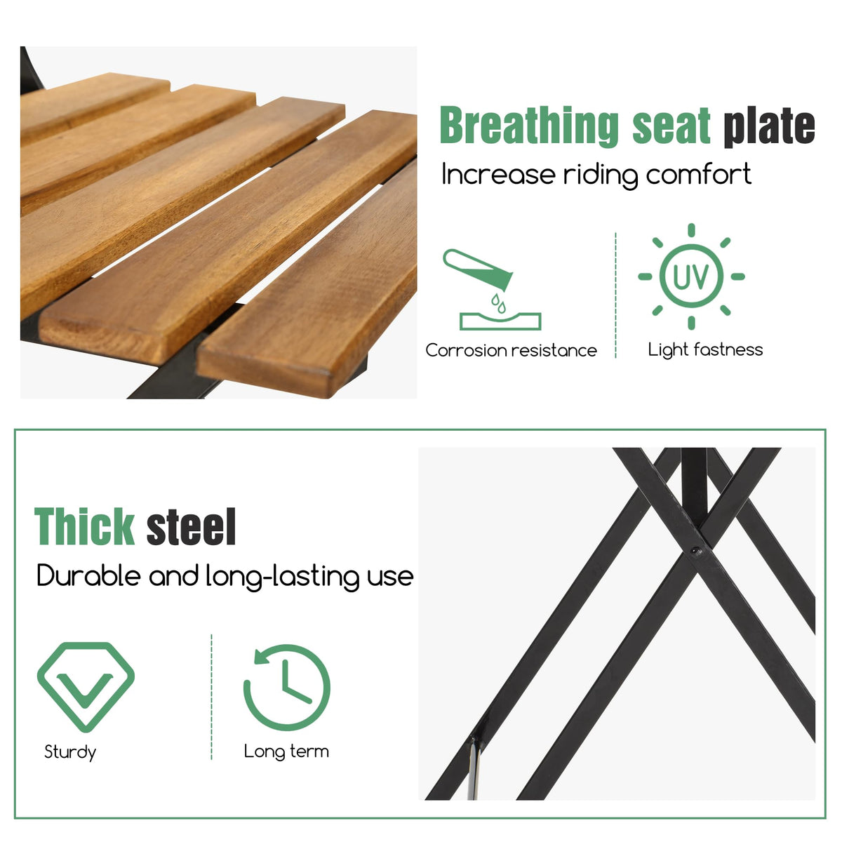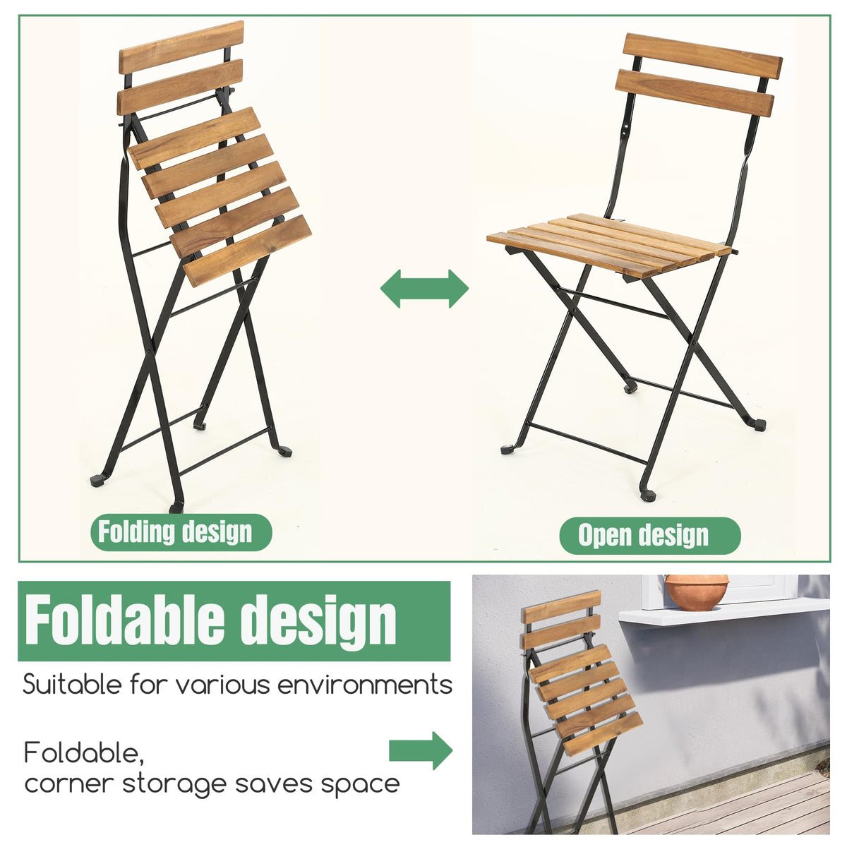 3 Pieces Bistro Set Outdoor Furniture Sets 2 Folding Chairs And Table Steel Frames And Weather-Resistant Wood Portable Design For Bistro & Balcony (Natural)