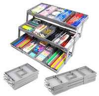 3 Tier Smart Collapsible Drawer Organizer,Multi Level Stacking Folding Junk Organizer, Foldable Expandable Pop Up Tray, Expandin