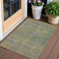 3' X 5' Green Gold And Charcoal Abstract Washable Indoor Outdoor Area Rug