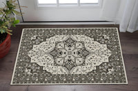 3' X 5' Ivory And Gray Medallion Area Rug With Fringe