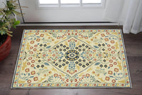Add some artistry to your room with this 3-foot x 5-foot ivory oriental power loom area rug with fringe. This rectangle shaped rug features a oriental design in ivory to give it visual interest. A classic shape marries with good looking design for your space the coloring of this rug adds a delightfully neutral tone to your home and will easily match with most any decor. Ideal for spaces with kids and pets, this rug is stain resistant to help repel stains and spilled liquids. Tassel ends bring a timeless and fashionable look to your interior. Place this area rug against a hardwood or tile floor and it will enliven your living space with style and sophistication. 39.37-inch H x 60.24-inch W x 0.32-inch D