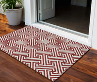 3' X 5' Merlot And Ivory Geometric Washable Indoor Outdoor Area Rug