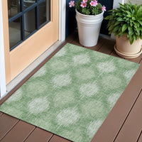 3' X 5' Mint Green And Fern Green Ikat Washable Indoor Outdoor Area Rug
