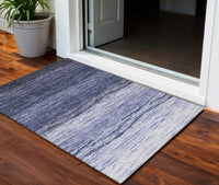 3' X 5' Navy Blue And Ivory Ombre Washable Indoor Outdoor Area Rug