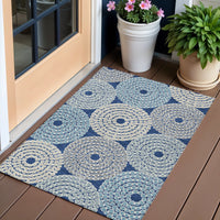 3' X 5' Navy Blue Gray And Aqua Geometric Washable Indoor Outdoor Area Rug