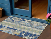 3' X 5' Navy Blue Green And Gray Aztec Washable Indoor Outdoor Area Rug
