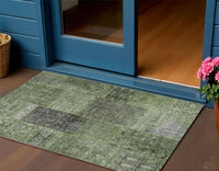 3' X 5' Olive Green And Gray Patchwork Washable Indoor Outdoor Area Rug
