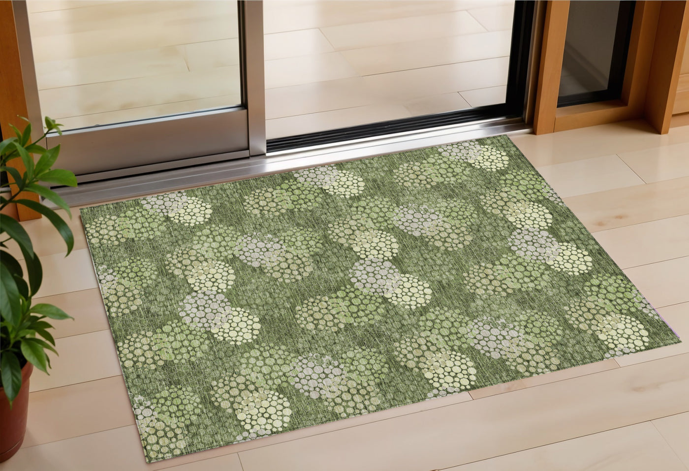 3' X 5' Olive Green And Gray Polka Dot Washable Indoor Outdoor Area Rug