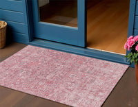 3' X 5' Pink Blush And Charcoal Floral Washable Indoor Outdoor Area Rug