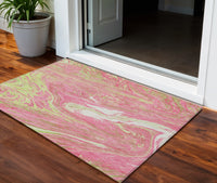 3' X 5' Pink Green And Ivory Abstract Washable Indoor Outdoor Area Rug