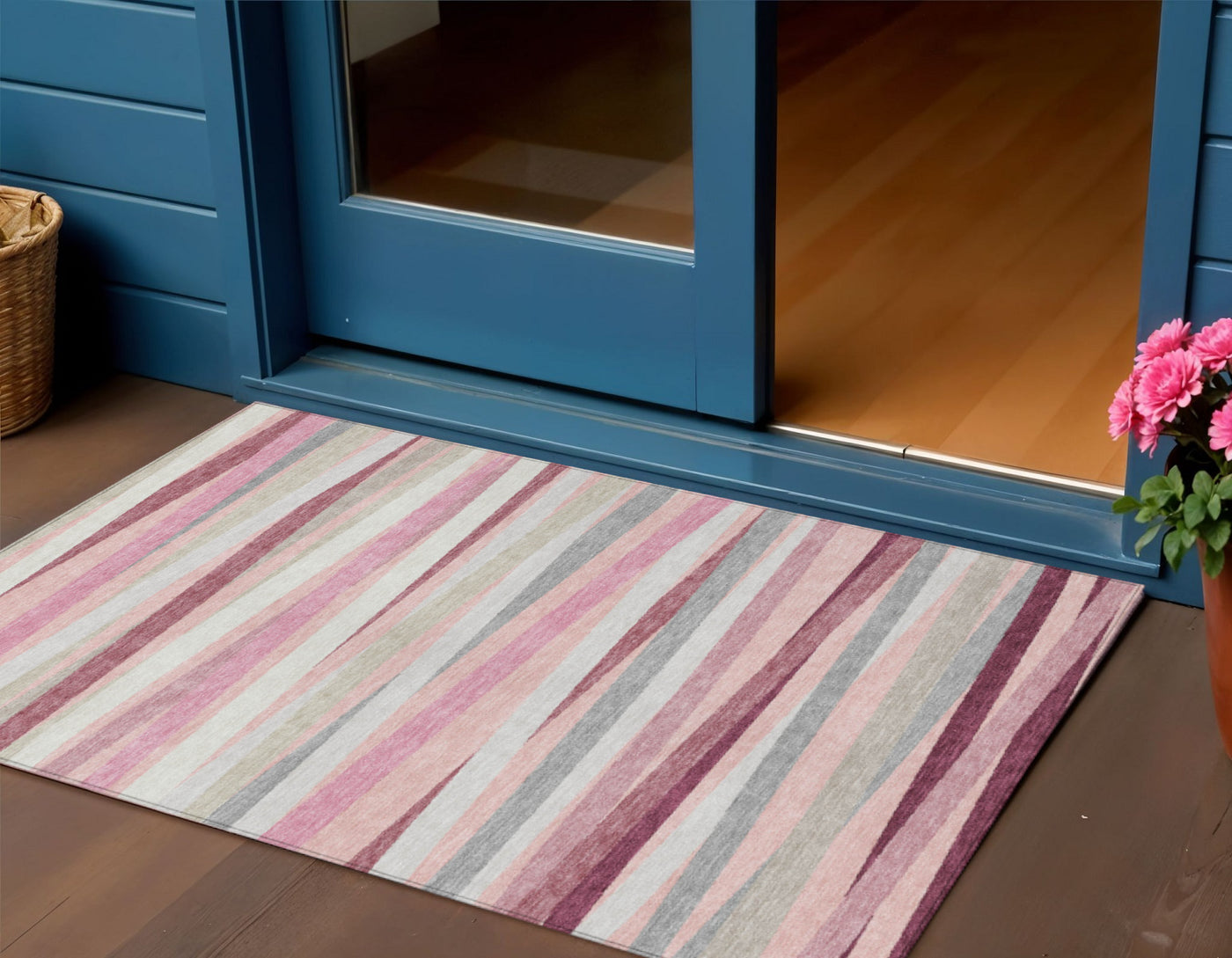 Set an inviting tone in your space with this 3-foot x 5-foot pink ivory and gray striped washable indoor outdoor area rug. This rectangle shaped rug features a striped design that will work well both indoors or out. A classic shape marries with good looking design for your living room, hall, bedroom, porch, patio, or poolside. Ideal for outdoor spaces or high traffic areas with kids and pets, this rug is made from heavy duty polyester that is stain resistant to help repel water, dirt, and stains. Versatile in use, durable, and easy to maintain, this rug is an ideal solution to add a decorative and inviting touch to your indoor or outdoor space. 36-inch h x 60-inch w x 0.19-inch d.