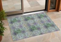 3' X 5' Purple And Green Floral Medallion Washable Non Skid Indoor Outdoor Area Rug
