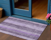 3' X 5' Purple And Lilac Striped Washable Indoor Outdoor Area Rug