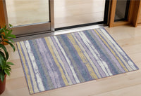 3' X 5' Purple Ivory And Beige Striped Washable Indoor Outdoor Area Rug