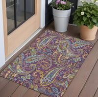 3' X 5' Purple Paisley Washable Non Skid Indoor Outdoor Area Rug
