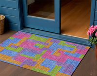 3' X 5' Purple Pink And Blue Abstract Washable Indoor Outdoor Area Rug