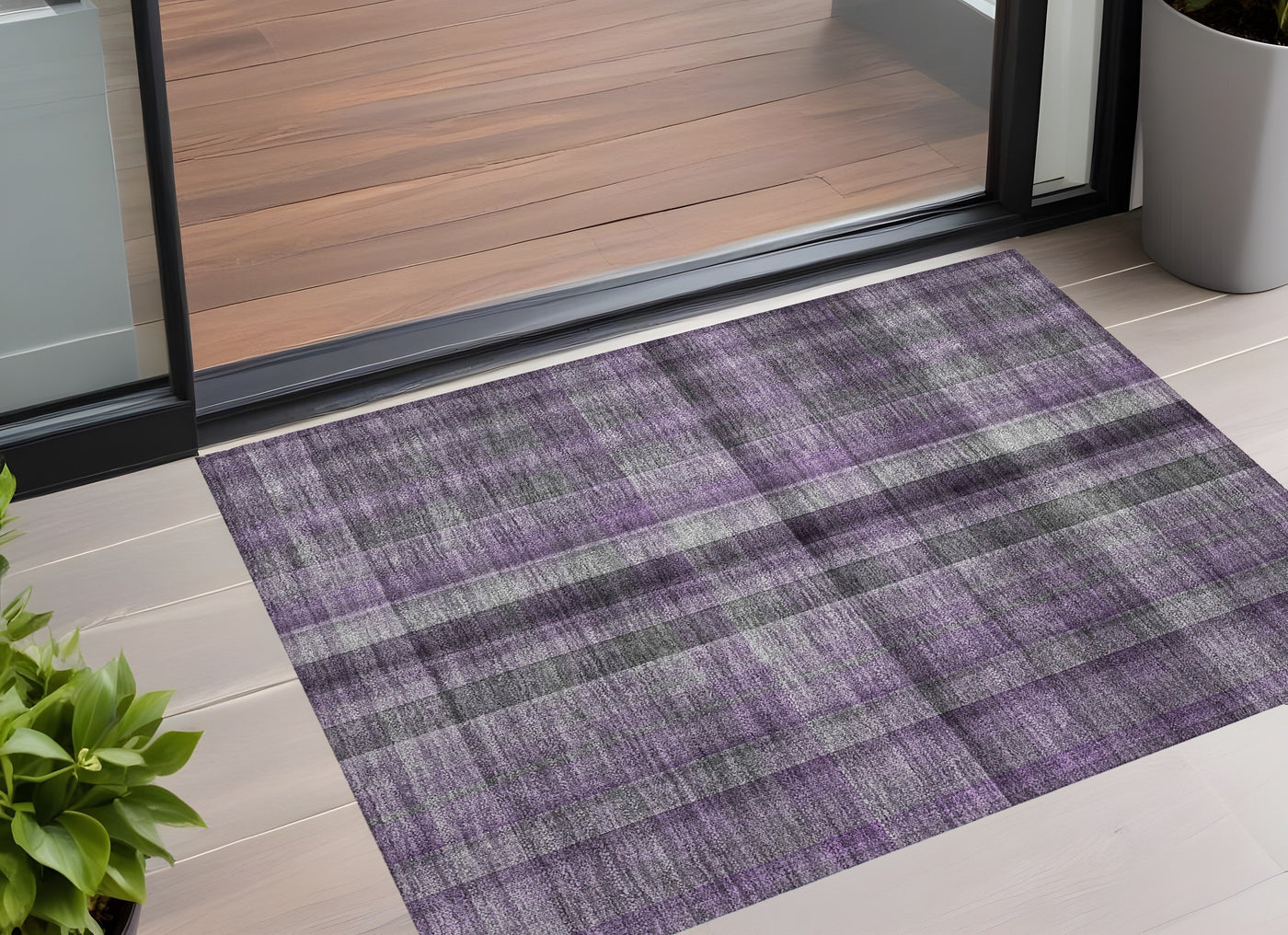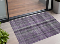 3' X 5' Purple Plaid Washable Non Skid Indoor Outdoor Area Rug