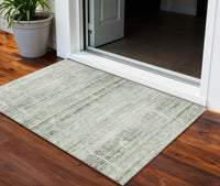 3' X 5' Sage Artichoke Green And Ivory Abstract Washable Indoor Outdoor Area Rug
