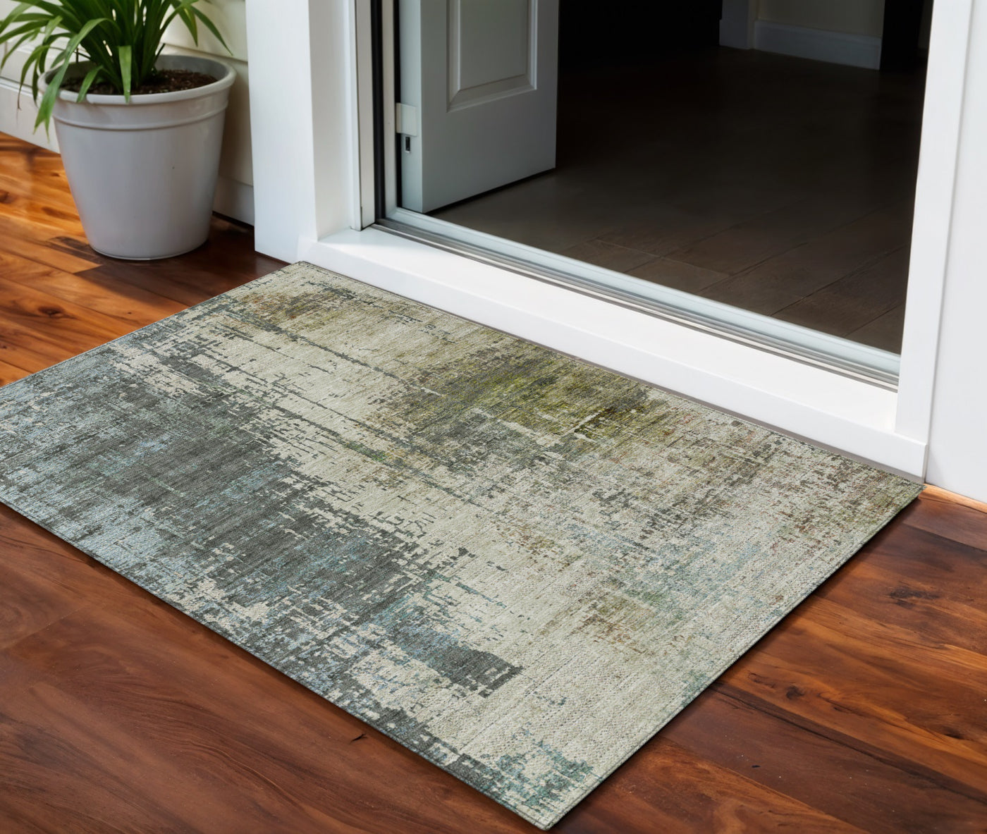 Add some artistry to your room with this 3-foot x 5-foot sage beige and brown abstract washable indoor outdoor area rug. This rectangle shaped rug features a abstract design that will work well both indoors or out. A classic shape marries with good looking design for your living room, hall, bedroom, porch, patio, or poolside. Ideal for outdoor spaces or high traffic areas with kids and pets, this rug is made from heavy duty polyester that is stain resistant to help repel water, dirt, and stains. Makes a great way to dress up your patio, porch, or poolside, but also works well as a durable and easy to maintain option in the kitchen, family room, or mudroom. 36-inch h x 60-inch w x 0.19-inch d.