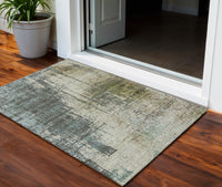 3' X 5' Sage Beige And Brown Abstract Washable Indoor Outdoor Area Rug